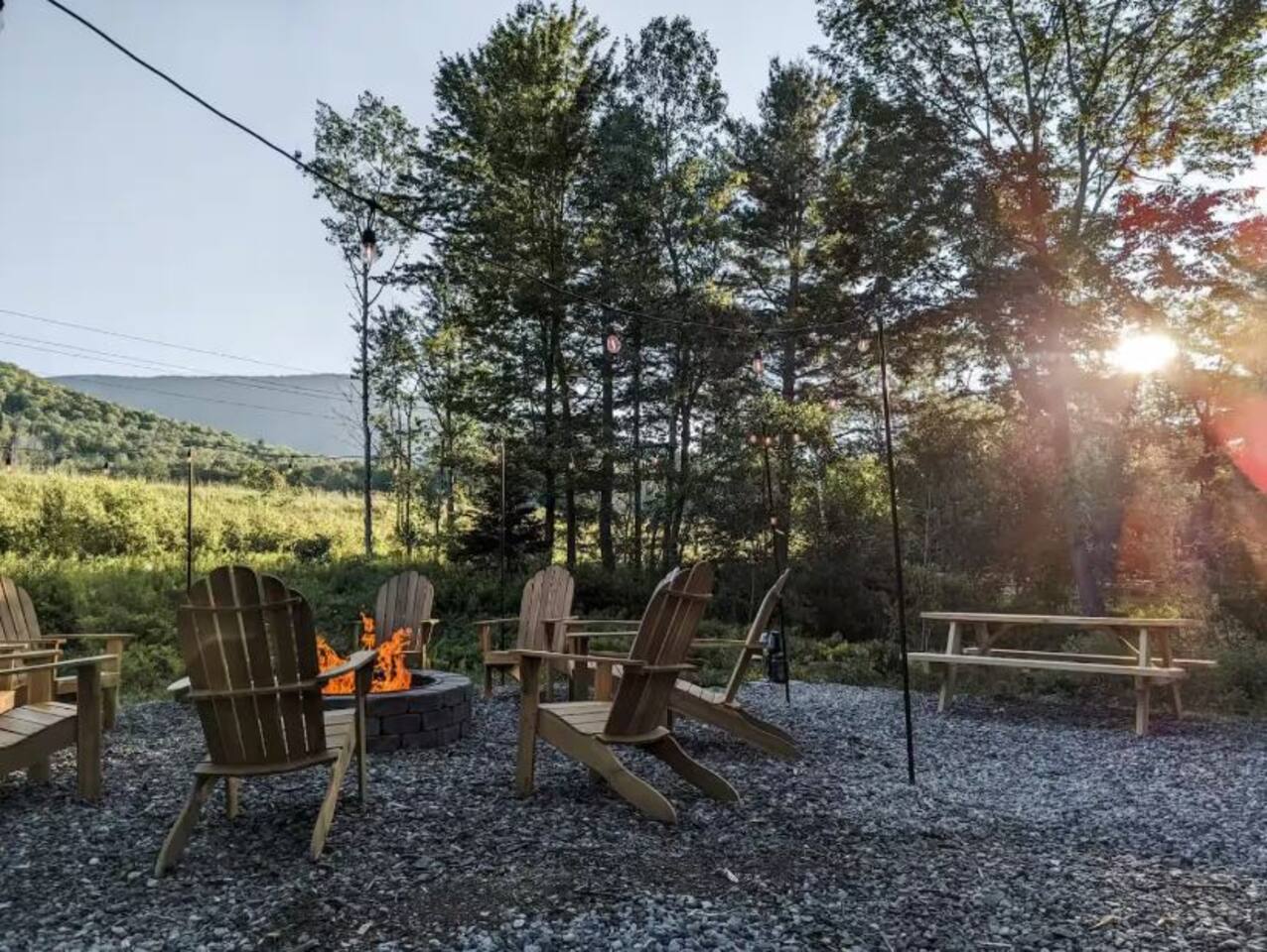 NEW Luxury renovated Hunter Catskills modern house is the perfect getaway for friends and families to enjoy located minutes from skiing + downtown. There really isn't any reason to leave this amazing place with your own fire pit, hot tub, arcade games, infinity game table, and a wood burning stove! Also don't forget about those Hunter Mountain views! I promise you won't be disappointed:)