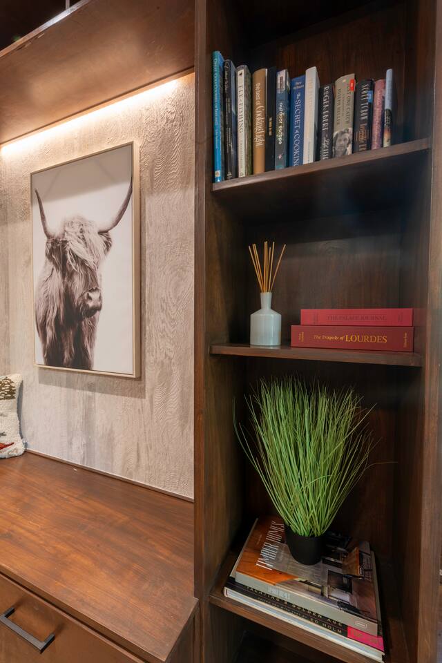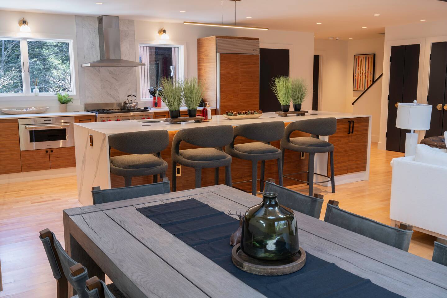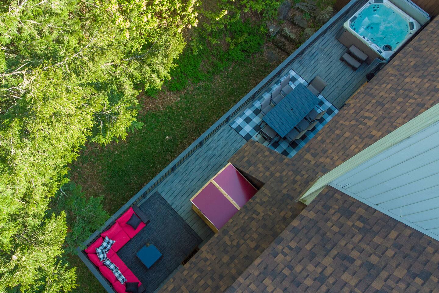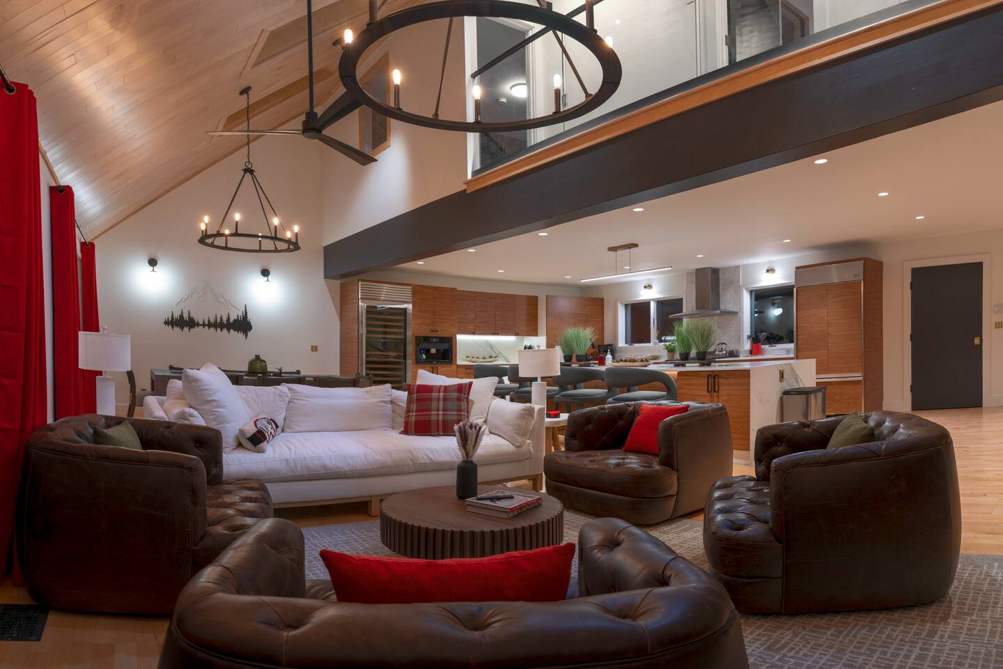 Stowecation is a perfect place to gather with friends or family with 5 bedrooms and amazing views off of the large decks! Test your skills on the shuffleboard table and Arcade or simply relax in the hot tub and sauna! The choice is yours Stowecation has it all! Perfect location just minutes to the mountain and to town. Come stay in the largest and most luxurious unit in the Stonybrook community! Direct access to the Stowe rec path and Cady Hill mountain bike trail system. Short walk to the famous Alchemist brewery, restaurants and shops. FEATURES * 4,100 Sqft with 5 Bedrooms * Hot Tub * Sauna * Game Room * EV Car Charger * Outside Dining * BBQ Grill * 6 Bathrooms * Pull out sofa bed * 4 Fireplaces (2 wood burning) * Sub Zero Refrigerator * Wolf Stove and Microwave * Miele built in coffee machine * Sub Zero Wine Cooler * Built in Ice Machine * Heated Bathroom Floors * Washer/Dryer * Central AC * Wet Bar * Large Spacious Decks * Resort Pools/Tennis Courts/Gym/Sauna * High Speed Wi-Fi * Dedicated Work Space * Fully Stocked Luxurious Kitchen and Spacious Dining Room FIVE BEDROOMS & SIX BATHROOMS * Bedroom 1 : King bed master suite w/TV on 2nd level with walk in closet and large tiled shower with separate soaking tub * Bedroom 2 : Queen bedroom suite w/TV on 1st floor with sitting area and master bath tiled shower * Bedroom 3 : Queen bedroom w/TV on 2nd floor with sitting area and shared full bath * Bedroom 4 : King bedroom w/TV on 2nd floor with shared full bath * Bedroom 5 : King bedroom and Queen bunk beds w/TV on ground floor with sitting area and large master bath with tiled shower and soaking tub * Pull out sofa bed in the library/office FAMILY AMENITIES * Washer & dryer laundry on ground floor * High chair * Pack n play (sheet not included) * Baby dinnerware LIVING ROOM * Open concept with luxurious soft and comfy couches and chairs. Wood burning fireplace with large smart TV OFFICE * Cozy area with a work station and wood burning fireplace KITCHEN * Fully equipped * Island bar seating for four * Coffee station with drip and Keurig machine * Miele custom built in coffee machine * Top of the line appliances - Sub Zero, Wolf, Miele DINING * Seats a total of 8 people at the table plus 4 more at the island bar GROUND FLOOR GAME ROOM/BAR AREA * Gas fireplace * Arcade machine 2 player * Shuffleboard * Connect 4 wall mounted * TV * Seating areas * Wet bar with icemaker and mini fridge * Wine fridge * Round table with board games Exterior * EV universal car charger * Hot tub 8 person * Dining table 8 person * Sauna infrared 4 person * Couch and tables * BBQ grill propane * Seating area in front deck with rocking chairs * String lights DISTANCE TO ATTRACTIONS * Stowe Mountain Resort 4 miles * Stowe Rec Path under 1 mile * Alchemist Brewery 1 mile * Von Trapp Brewery 2 miles * Piecasso Pizza 1.5 miles * Idletyme Brewery 1.5 miles * Ben and Jerry's Factory Facility 10 miles
