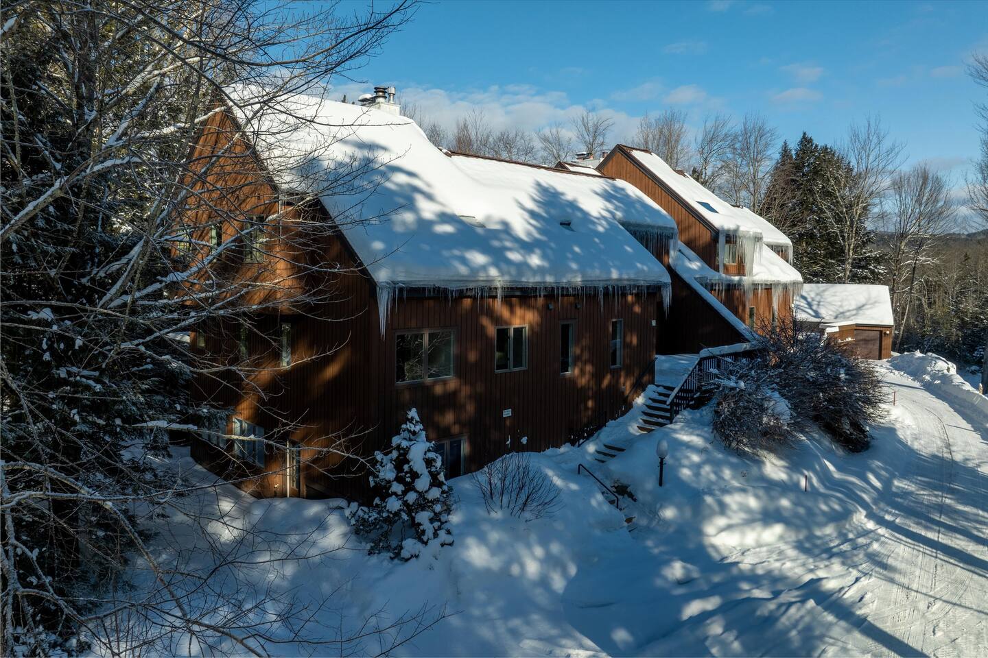 You will be right in the center of it all! Stowecation is located in Stonybrook resort which is close to both skiing and town. The resort has 2 outdoor seasonal pools and numerous walking paths to enjoy! Jump on the mountain shuttle to head to ski or town or cruise down the Stowe rec path all located at the entrance!